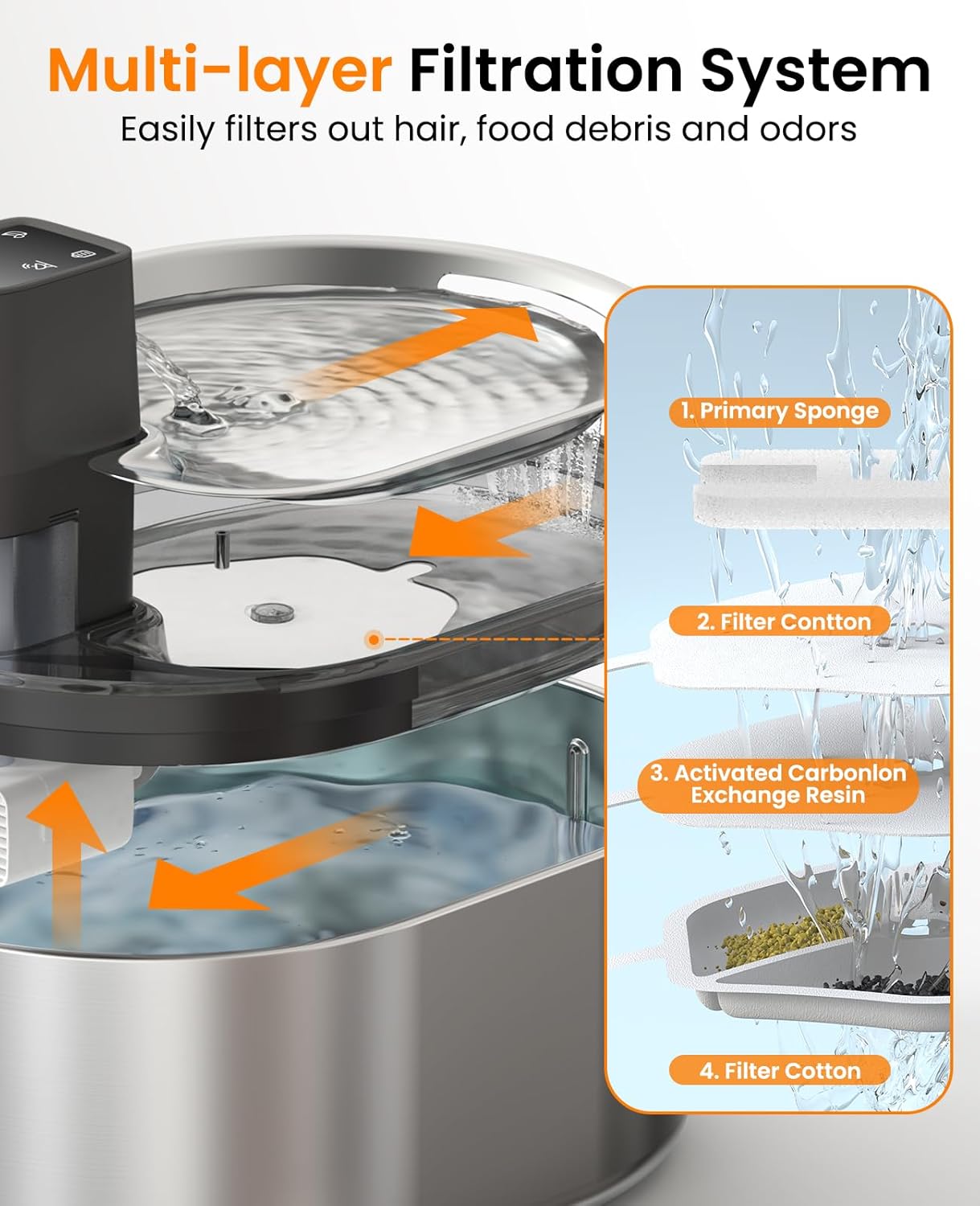 Los filtros ayudan a eliminar impurezas, pelos, restos de comida y otros residuos del agua, manteniéndola limpia y segura para tu mascota. Muchos filtros también contienen carbón activado para reducir el olor y mejorar el sabor del agua, lo que anima a tu mascota a beber más.