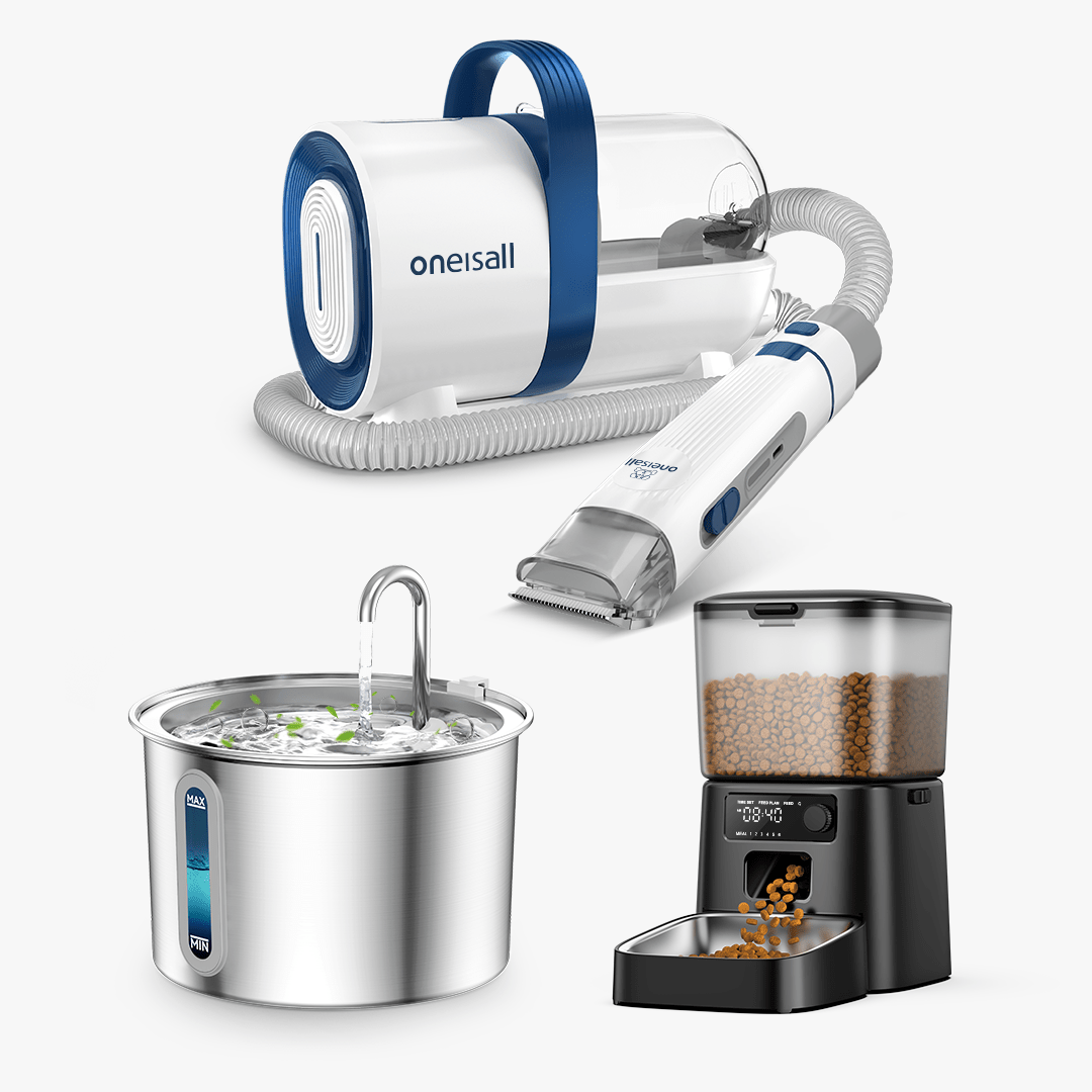 Oneisall LM2 Pet Grooming Vacuum Kit & 2L Cat Water Fountain & 3.5L Automatic Cat Feeder Set - Oneisall - EU