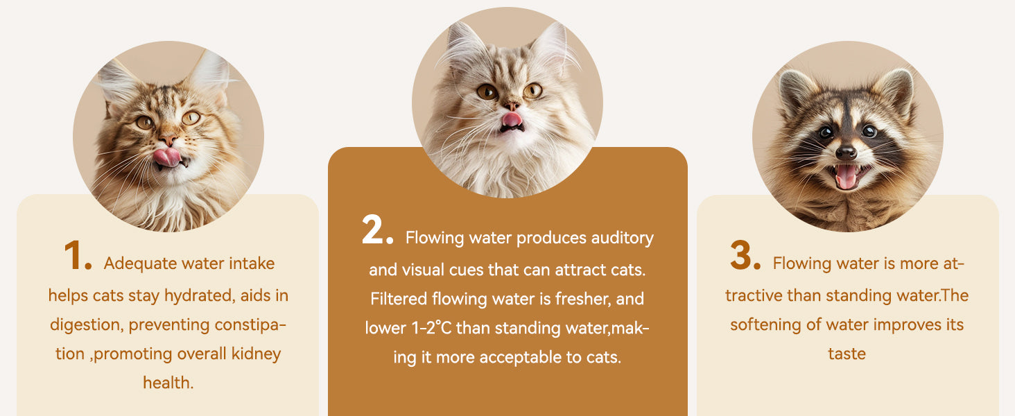 Cats are more inclined to drink from flowing water because it mimics natural water sources like streams. The continuous circulation of water in fountains also keeps it fresh and oxygenated, encouraging your cat to drink more, which promotes better hydration and overall health.