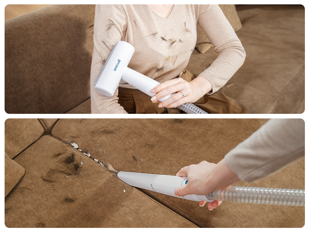 A dog vacuum brush is a grooming tool that combines brushing and vacuuming functions. It removes loose fur and debris from your dog's coat while suctioning the hair into a vacuum, reducing mess during grooming sessions. For example, the Oneisall Cozy C1 Grooming Vacuum Kit offers this functionality, efficiently collecting pet hair into its 2L vacuum container.