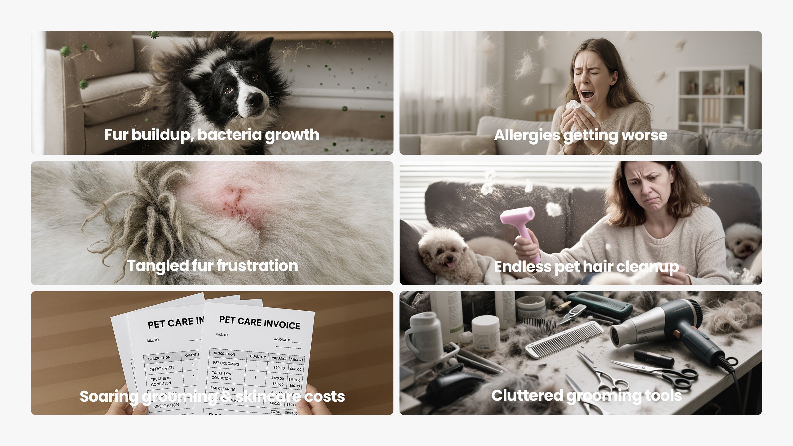 - Grooming Brush: Used to clean floating hair and dander, making the hair more healthy, shiny, and soft.