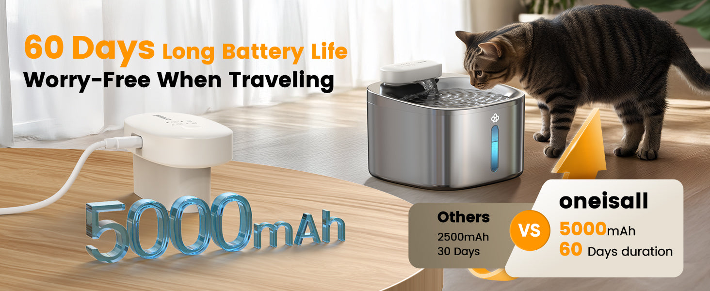 - Remove the Master Control Module from water fountain(or just plug in without removing). Connect the Type-C cable to the power port and the adapter(5V/1A adapter included), then turn on the power. The charging time is about 7 hours.