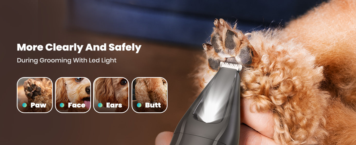 Dog clippers are designed for full-body grooming and can handle large sections of fur, while dog hair trimmers are typically used for detailed work around sensitive or small areas like the paws, face, and tail.
