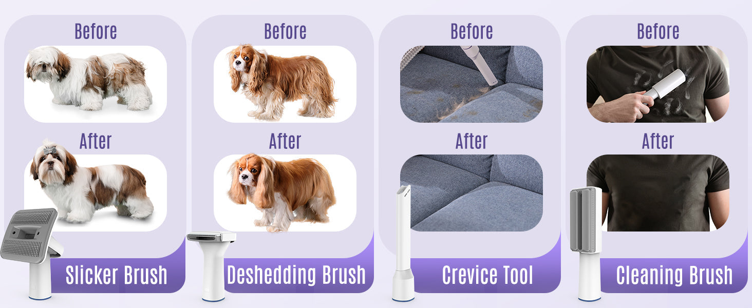 - Grooming Brush: Used to clean floating hair and dander, making the hair more healthy, shiny, and soft.